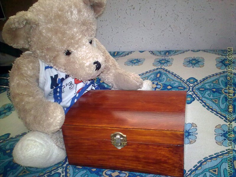Hoy no he sido yo quien ha descubierto algo nuevo en casa. Esta mañana, Coki, el pequeño osito blanco, se ha encaramado a una estantería y sin querer ha tirado un montón de papeles que había. Debajo de ese montón de papeles había una caja de madera cerrada. Coki me ha llamado rápidamente, él es más cotilla que yo, pero al ser tan pequeño no tiene fuerza para abrir la caja, así que me ha llamado a mí por ser el osito más fuerte.